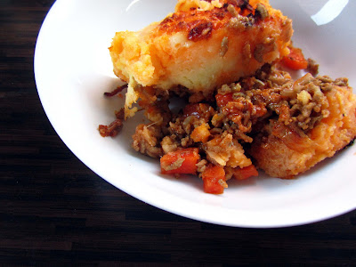 Pre heat the oven to 190°C and mash the potato and parsnip with some butter and a splash of milk, not too much as you need the topping to be firm. Add the lamb to an oven proof dish and top with the potato and parsnip, add it a little at a time from the centre of the dish, so you get an even spread and it doesn’t just sink in a big lump... Fork the potato into rough peaks so you get good crispy bits when it is cooked and top with a scattering of a grated cheese of your choice... Finally bake for about 25 minutes until golden brown. Leave it to rest for 5 minutes when it is ready, it gets as hot as a volcano in the middle and you just can't appreciate it properly when the first mouthful burns your tongue... Serve with peas or greens, whatever you fancy.